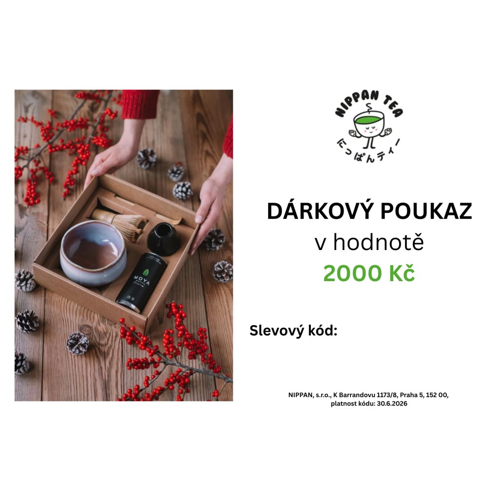 Dárkový poukaz v hodnotě 2000 Kč! Perfektní dárek pro milovníky čaje – obdarovaný si může vybrat z naší nabídky kvalitních čajů a doplňků.