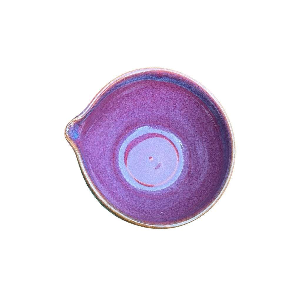 Tento jedinečný matchawan Fuji-iro byl ručně vyroben na hrnčířském kruhu ve slovenské keramické dílně. Jeho jemná růžovo-fialová glazura připomíná barvu květů vistárie – v japonštině právě „fuji-iro“ , tedy vistáriová barva. Název proto odkazuje nejen na estetiku, ale i na japonskou tradici, se kterou je pití matcha čaje úzce spjato.