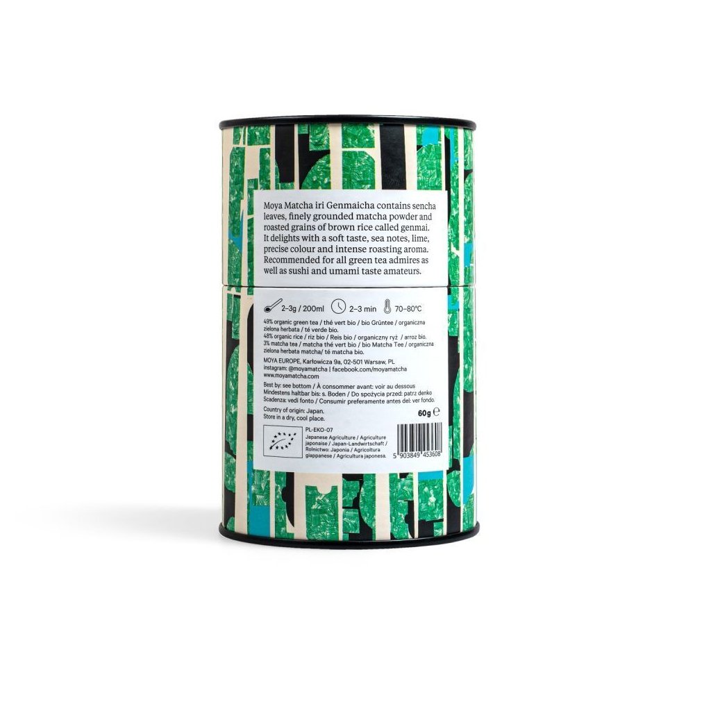 Moya Matcha Iri Genmaicha je novou verzí oblíbeného čaje genmaicha, tedy japonského zeleného čaje s rýží. Kombinuje jemné sušené lístky senchy, certifikovanou jemně mletou matchu a organická pražená zrna hnědé rýže, známá jako „genmai“. Její chuť je svěží, jemně sladká a máslová, s výraznými mořskými tóny umami, které podtrhuje přidaná matcha.