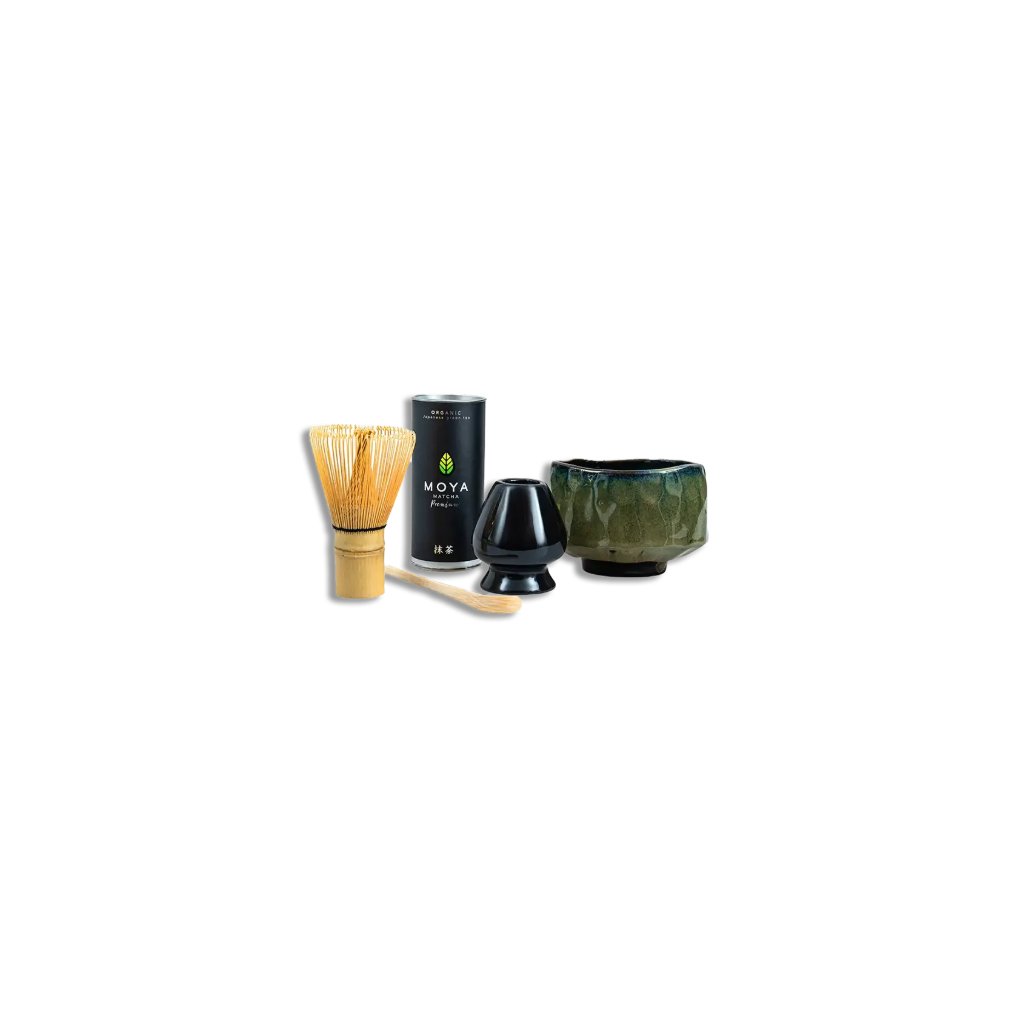 Tradiční sada na přípravu matcha obsahuje: Premium matcha 30 g, chasen, stojánek na chasen, chashaku - bambusovou lžičku a misku matchawan.