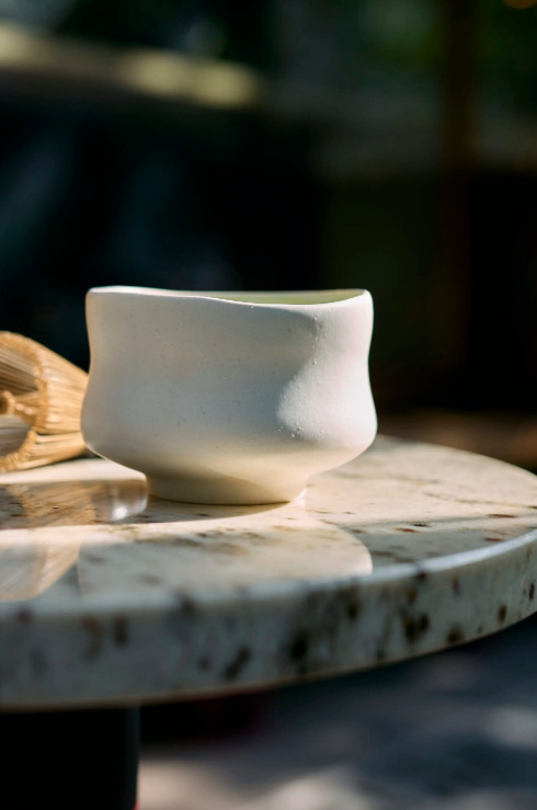 Matchawan Muku je oslavou jednoduchosti. Pokrytý jemnou, téměř surově bílou glazurou vyzařuje klid a minimalismus. „Muku“ v japonštině znamená čistotu nebo přirozenost – pojem zakořeněný v japonské estetice, kde krása spočívá v tichu, autentičnosti a nezdobenosti.