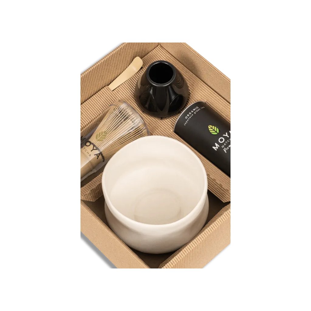 Tradiční sada na přípravu matcha obsahuje: Matcha Premium 30g, chasen, stojánek na chasen, bambusovou lžičku chashaku, a misku matchawan.
