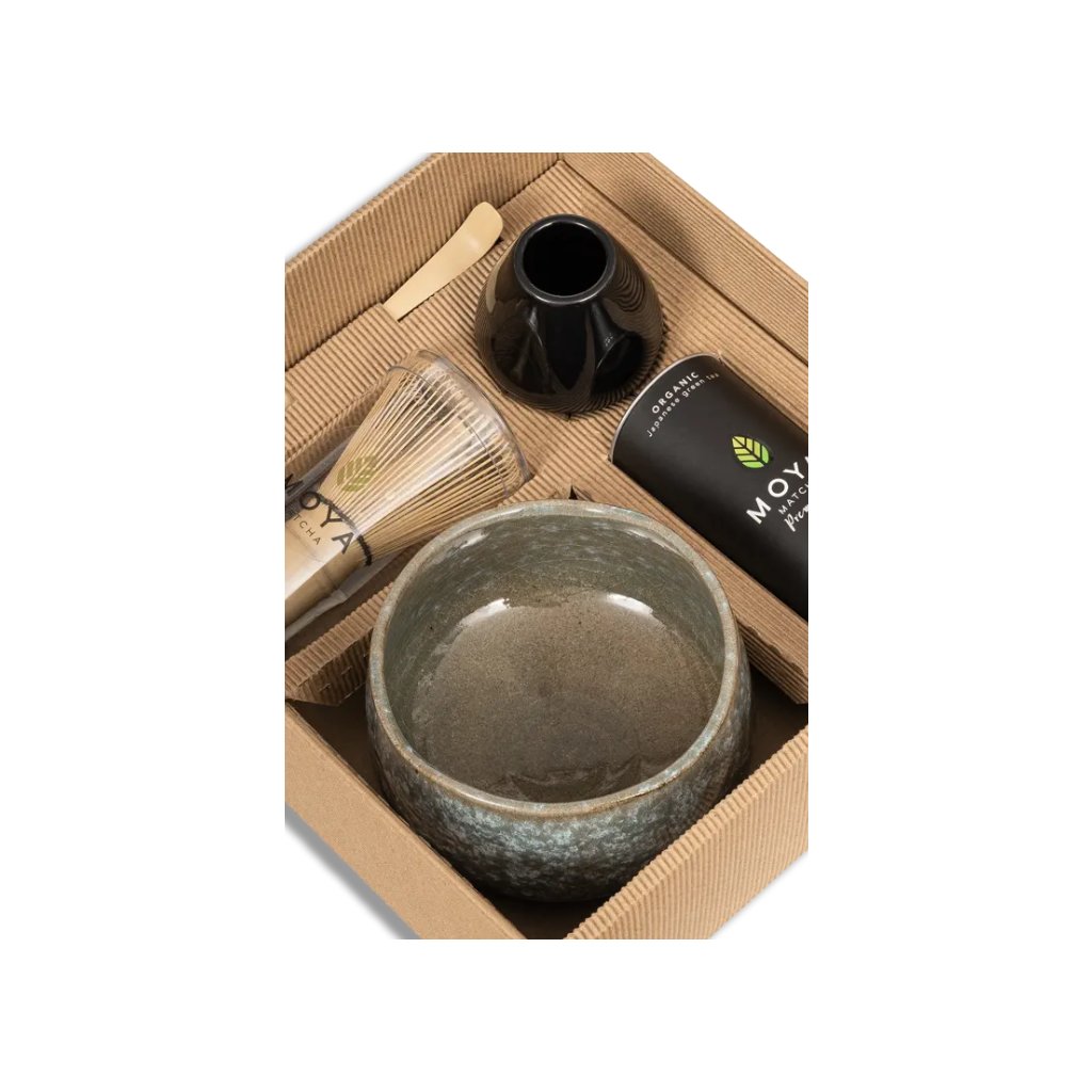 Tradiční sada na přípravu matcha obsahuje: Traditional matcha 30g, chasen, stojánek na chasen, chashaku - bambusovou lžičku a misku matchawan.