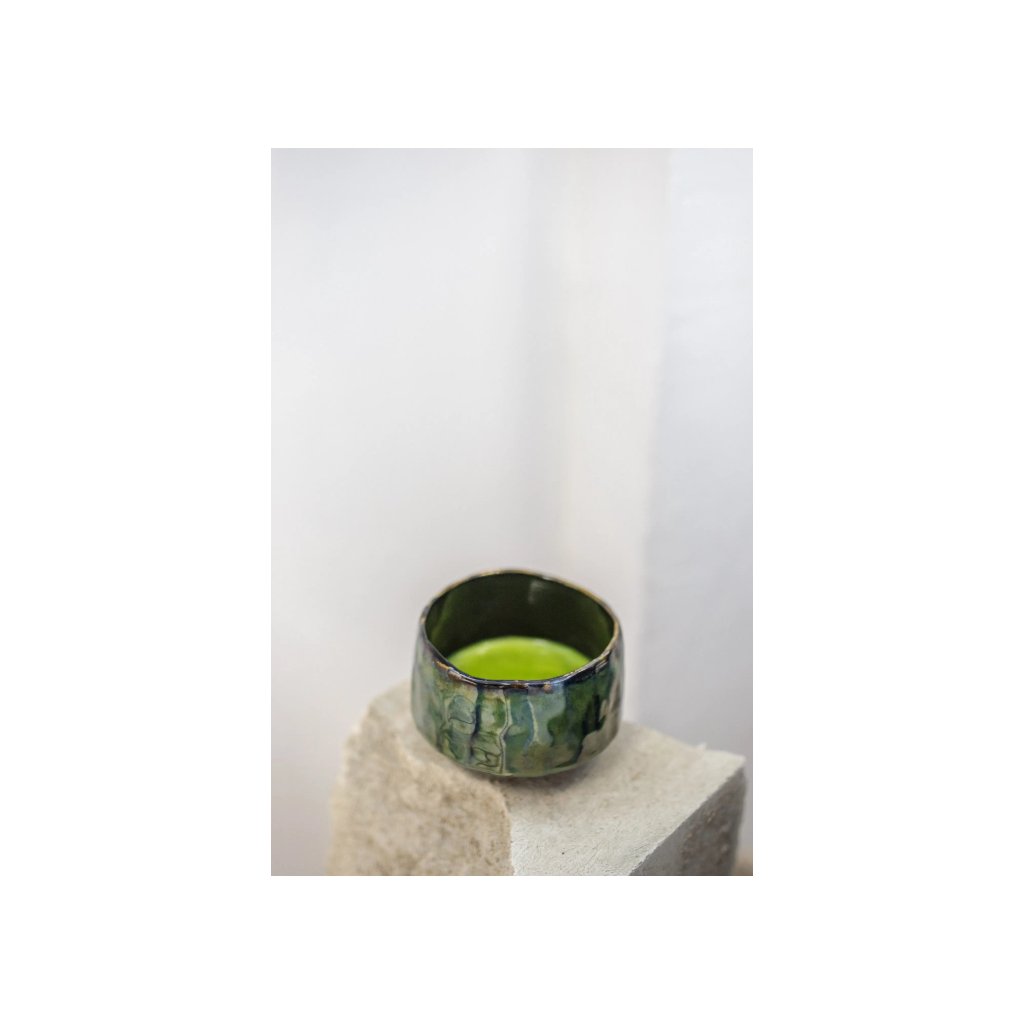 Miska na matchu Gyoku upoutá pozornost svou jedinečnou texturou a podmanivou barvou. Je zakořeněná v japonské čajové tradici a je určena k přípravě matchy pomocí bambusové metličky. Díky svislým stěnám a širokému dnu umožňuje snadné a pohodlné šlehání matchy s vodou, čímž rychle vzniká povrchová pěna.