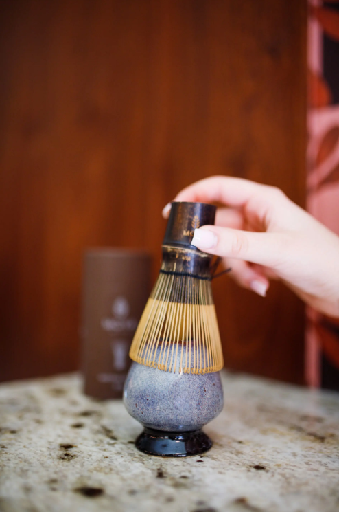 Stojánek na metličku na čaj matcha pomáhá bambusové metličce chasen rychleji schnout a zachovat si svůj tvar a trvanlivost. Bambusová metlička se prodává samostatně.