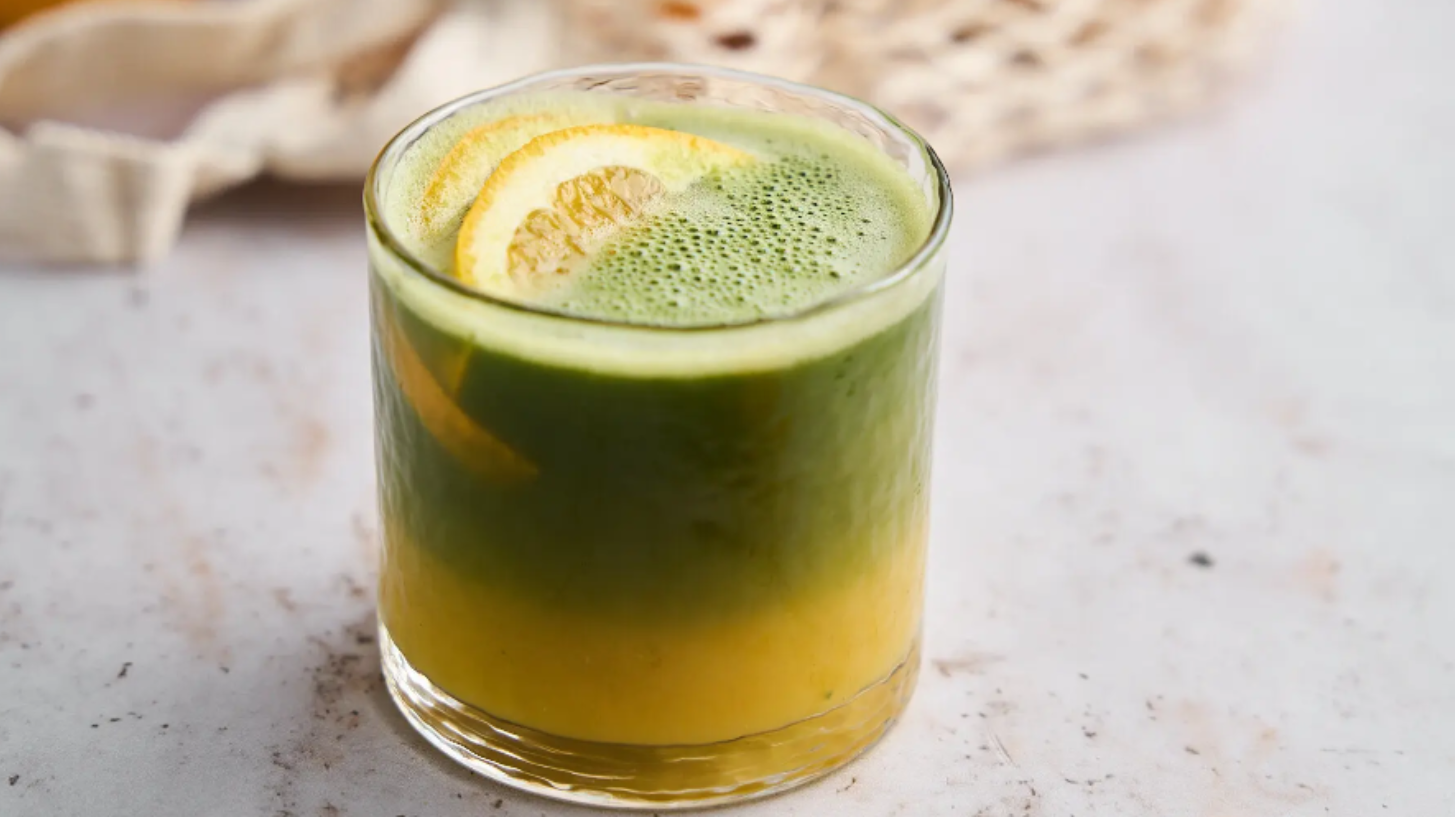 Matcha s pomerančovou šťávou